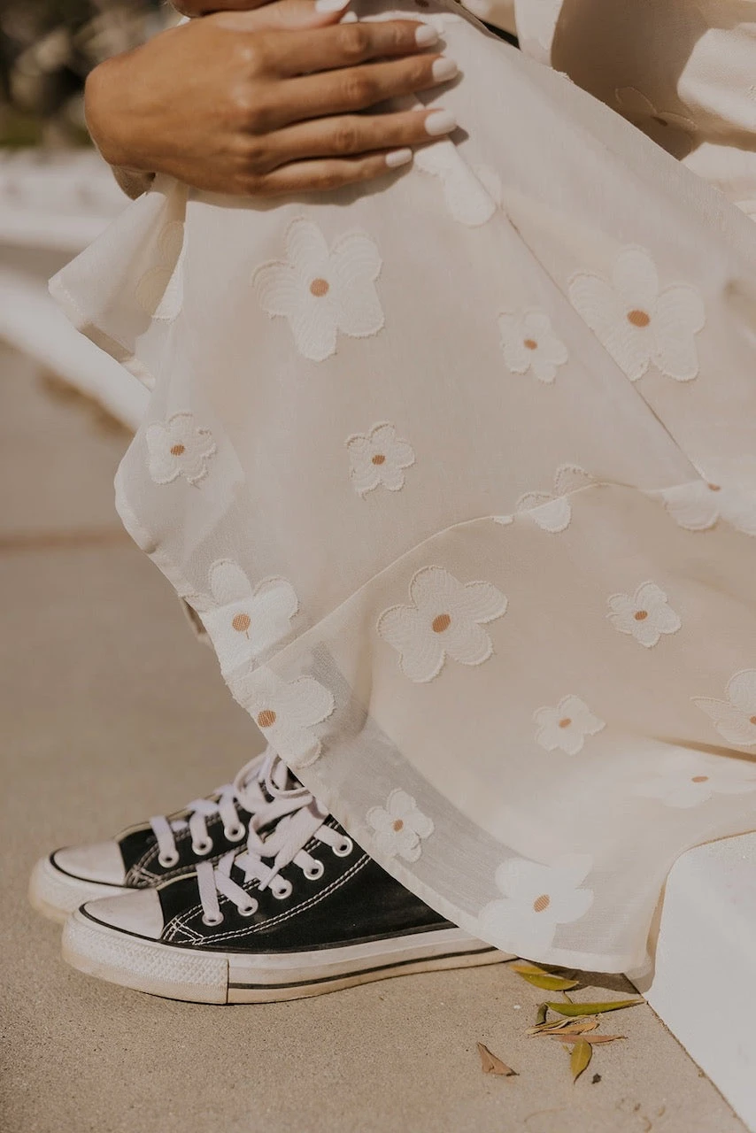 Show up in this dress + tell me it doesn’t make every head turn. Cream colored? Yes. Puff sleeves? Absolutely. Don’t even get me started on the flowers, because I will not stop. I seriously won’t. Pair her with sneakers or sandals + your favorite wide brim. And when you do just let us know so we can meet up and frolic through fields of flowers or down main street. We will decide later 🙂