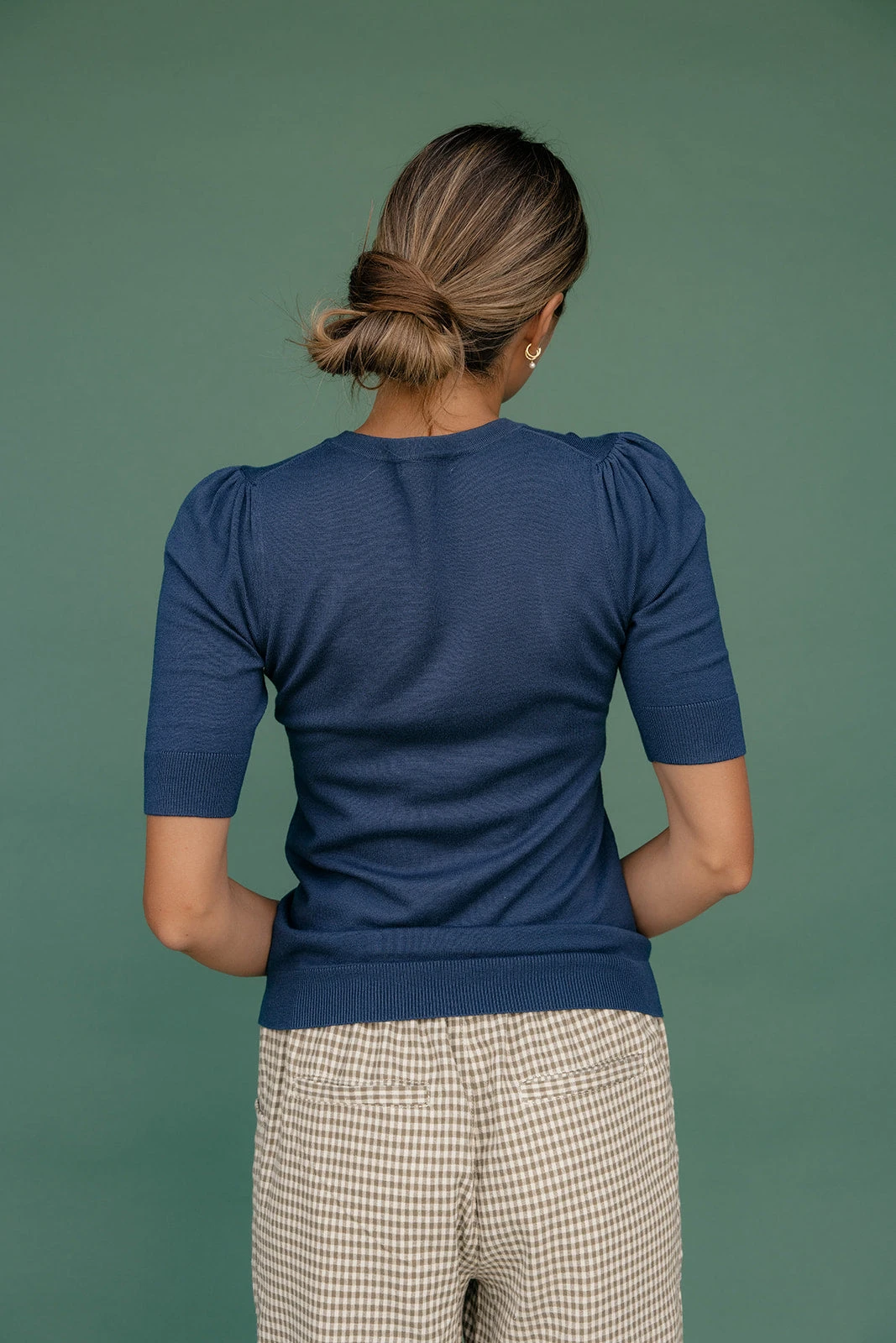 Present and perfectly polished, the Be Cool Roll Call Puff Sleeve Blouse is designed to level up your wardrobe with a sophisticated edge. This navy knit top combines the comfort of your favorite knitwear with the structured elegance of a high-fashion silhouette, making it an essential piece for the modern woman who values both style and ease.