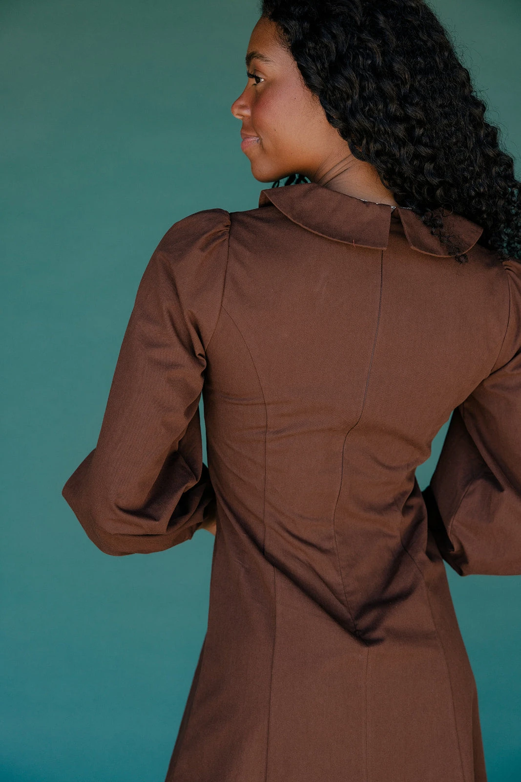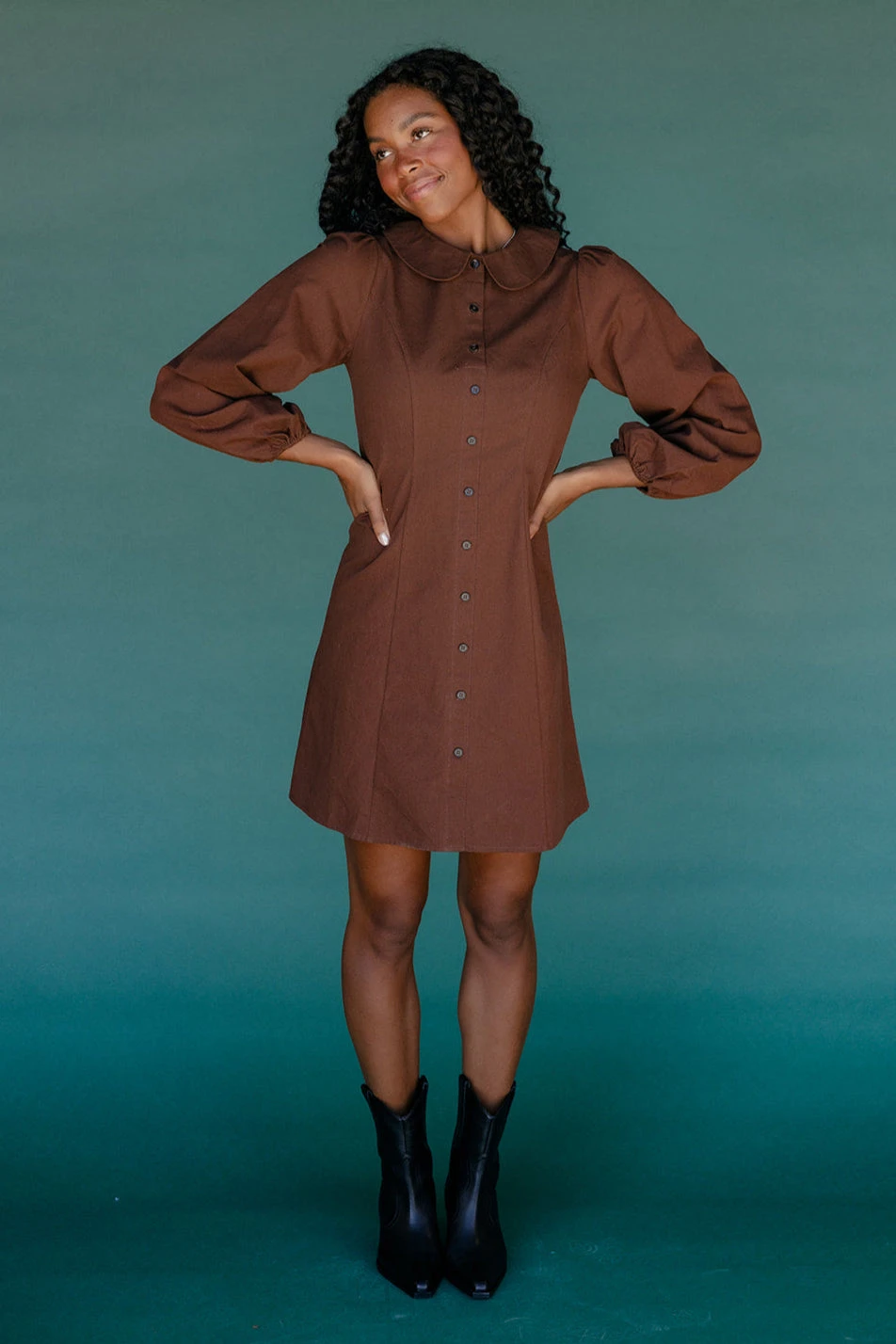 Finding the perfect balance between professional polish and effortless style shouldn’t be a challenge. This chocolate-brown mini dress solves your wardrobe dilemmas, offering a sophisticated, fall-ready look that transitions seamlessly from office meetings to evening outings.