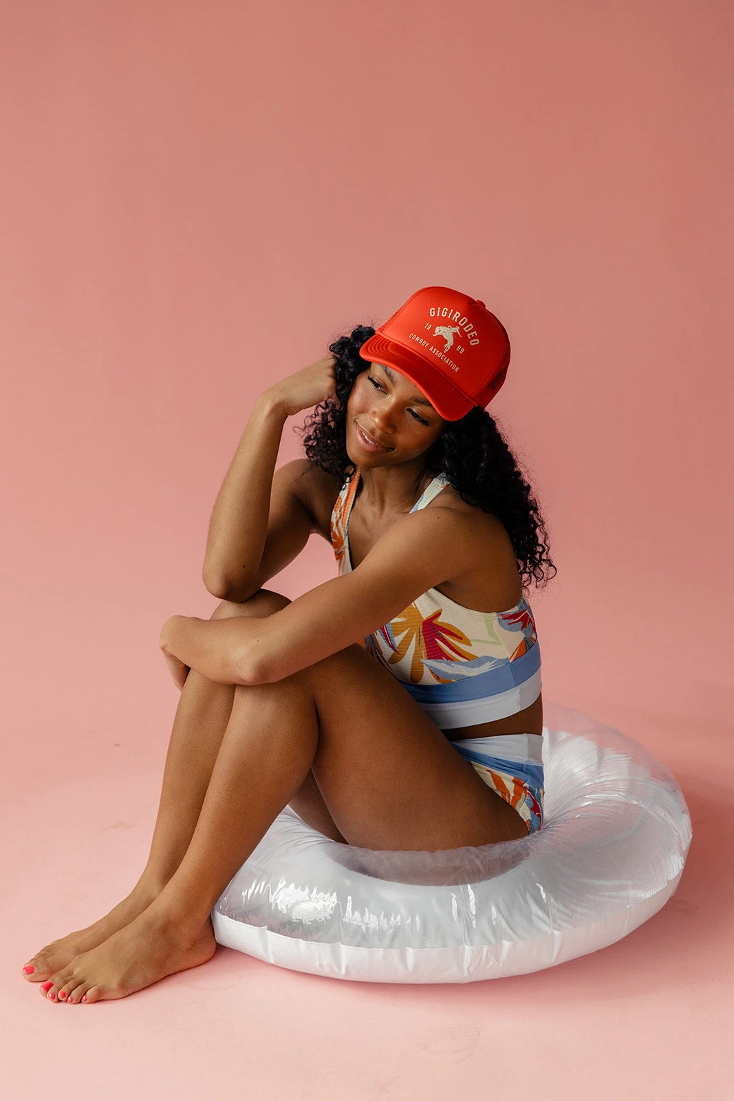 // paired with the gigi rodeo foam trucker hat in red + eden cut back crop