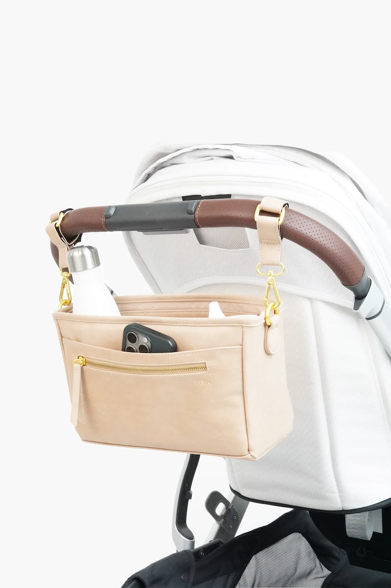 Elevate your daily strolls with the Fawn Design Stroller Caddy in Beige. Part of our signature collection, this spacious and deep organizer is designed to keep your phone, drinks, keys, and wallet perfectly organized and accessible. Crafted from our premium matte faux leather and accented with elegant hardware, it combines high-end fashion with essential parental functionality.