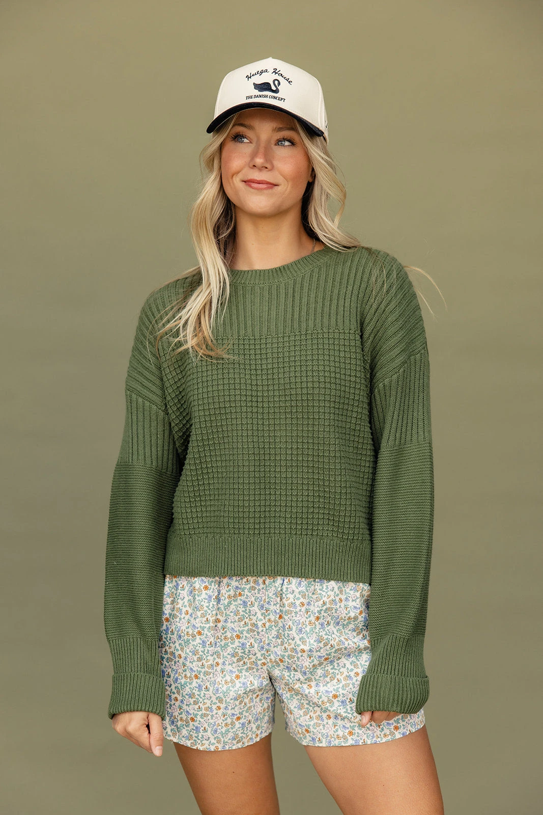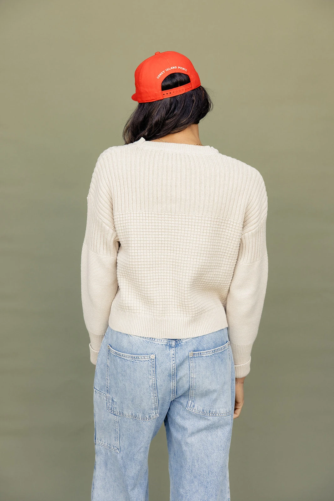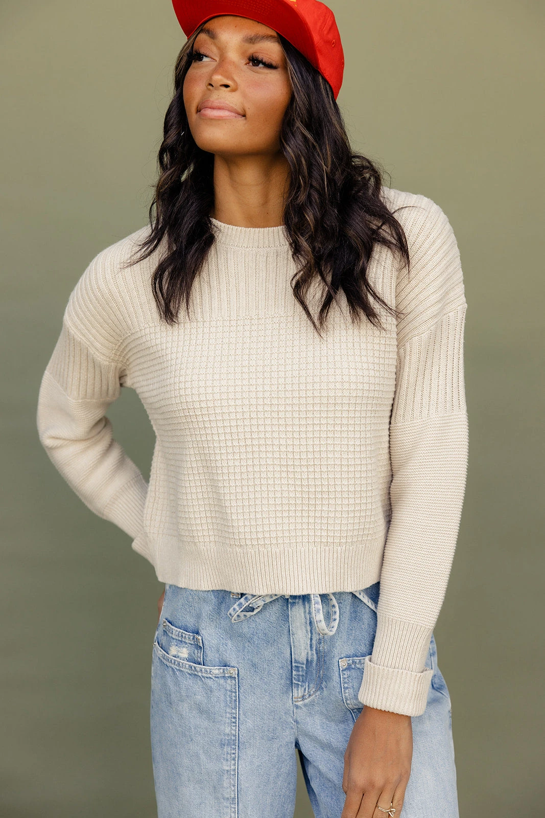 cornsilk // paired with the free people crvy outlaw wide leg jeans + montauk baseball hat in red