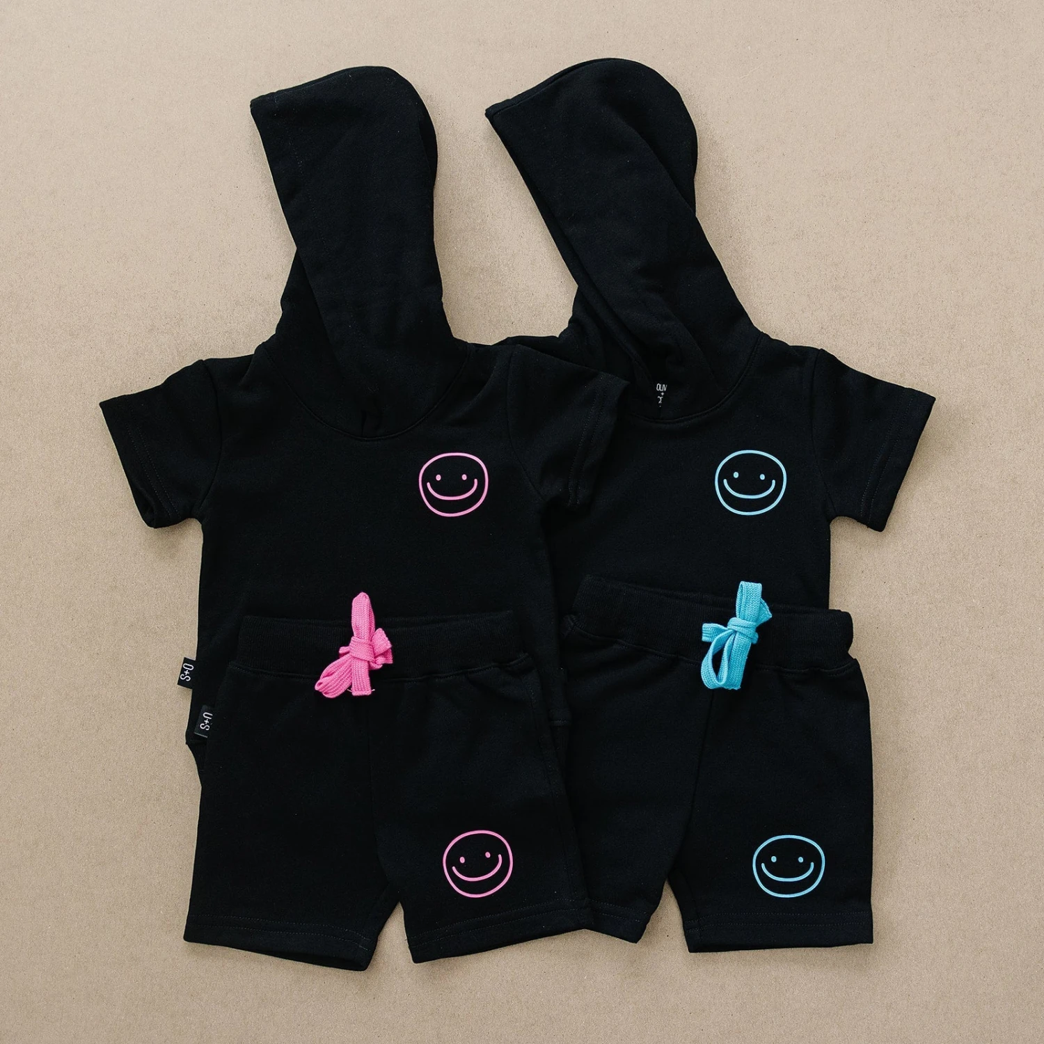 Give your child the perfect blend of comfort and style with our Axel Short Sleeve Hoodie Set. Designed for active little ones, this vibrant outfit solves the daily struggle of finding playwear that looks as good as it feels. Whether it’s a park day or a casual family outing, the cheerful smiley face design brings a burst of energy and joy to every adventure.