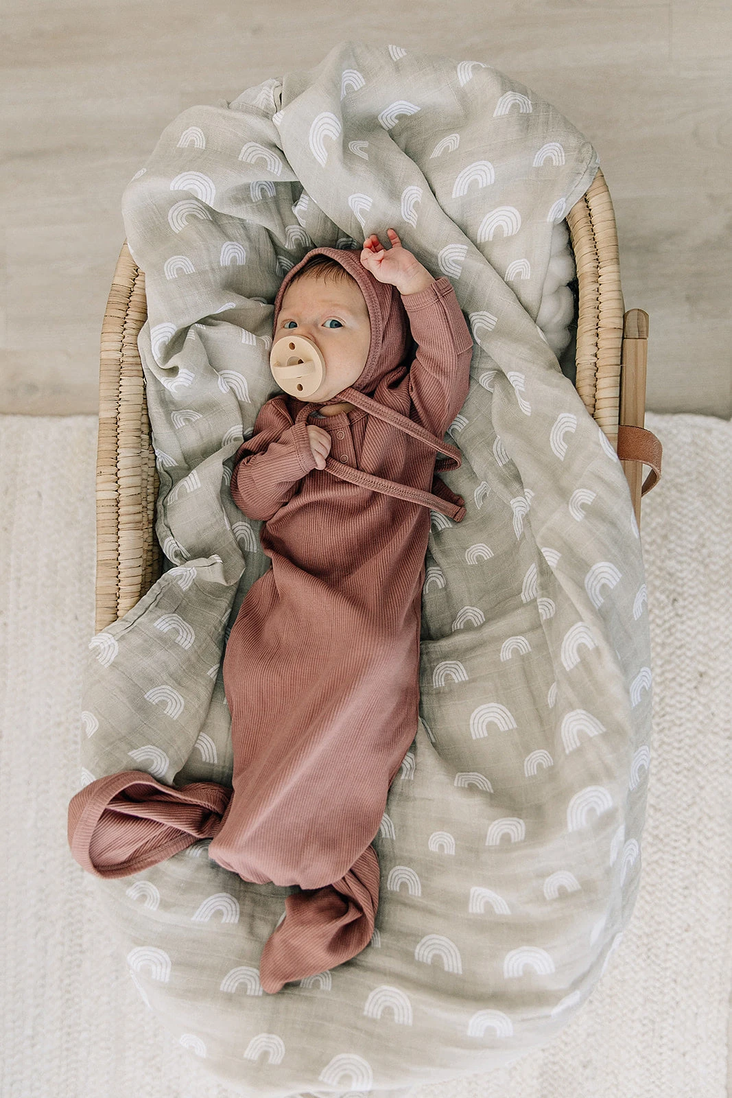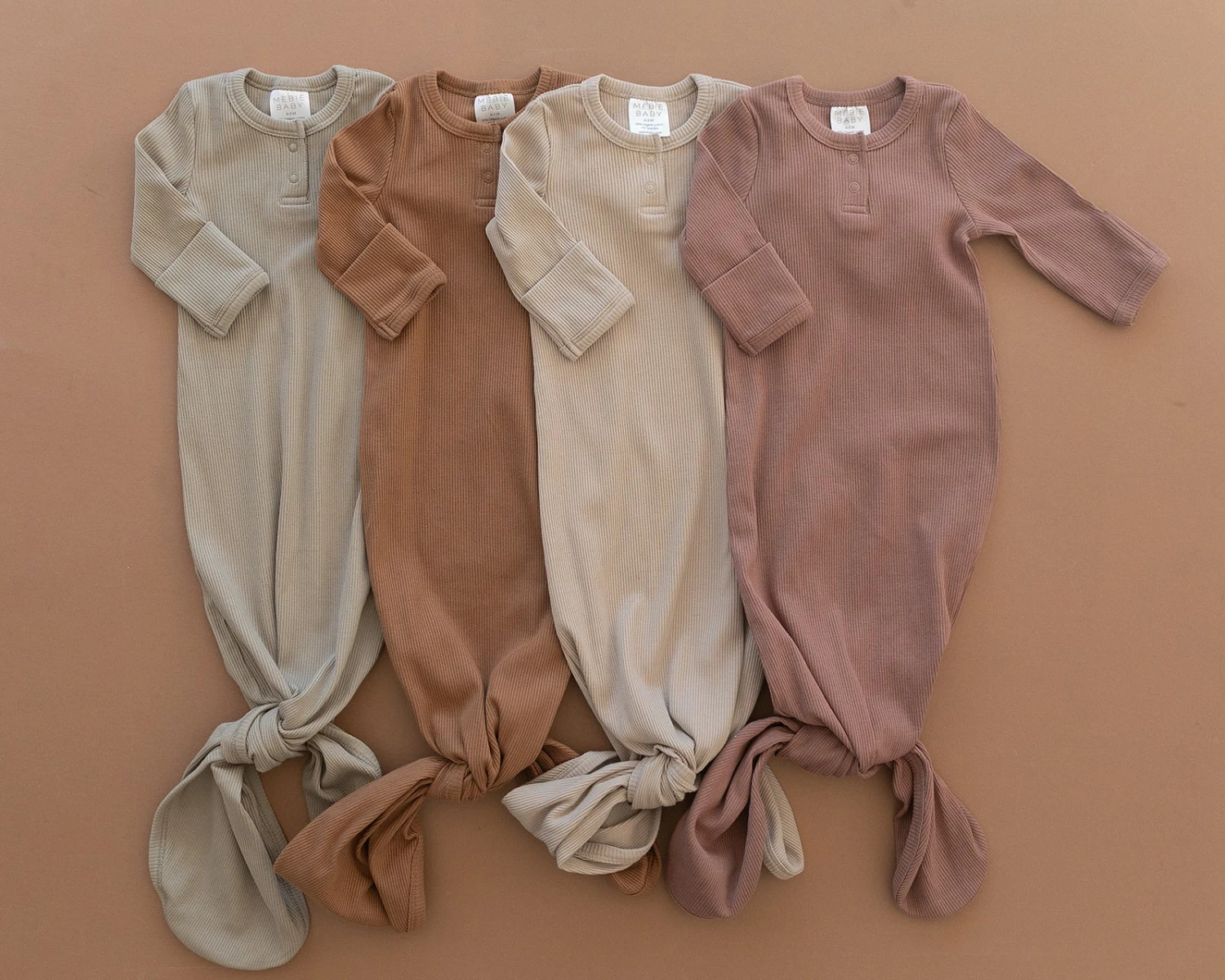 Experience the perfect blend of style and practicality with the Mebie Baby Organic Knot Gown in Dusty Rose. Part of our signature collection, this gown is meticulously crafted from premium organic cotton to provide your newborn with a soothing, breathable environment from day one. Its beautiful ribbed texture and sophisticated earth tone make it a timeless addition to any nursery wardrobe.
