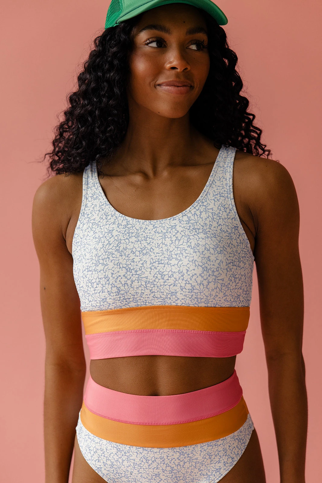 The Ostler Cut Back Crop is super comfortable and gives maximum support, so it’s perfect for any adventure you find yourself on this summer! 🙂 The quick-drying fabric keeps you cool, and the racerback style with zipper adds a sleek touch. The scoop neck is flattering, and the wide double band gives extra hold. Plus, the subtle florals make it cute and fresh!