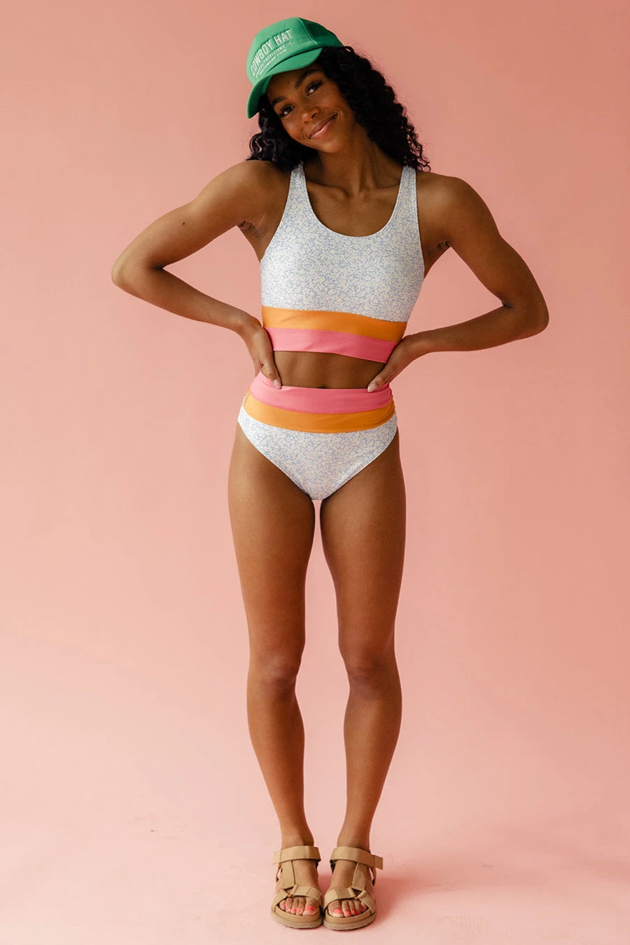 // paired with the cowboy hat + ostler colorblock high leg bottoms