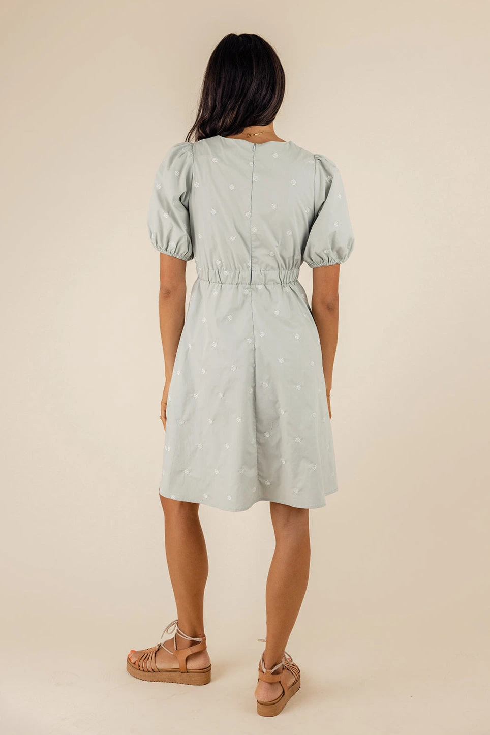 Sweet and dreamy, this embroidered dress is pure romance with its delicate details and soft pastel hue. The puff sleeves and cinched elastic waist add a flattering touch, making it effortlessly elegant. Perfect for picnics, brunch, or any moment that calls for a little extra charm!