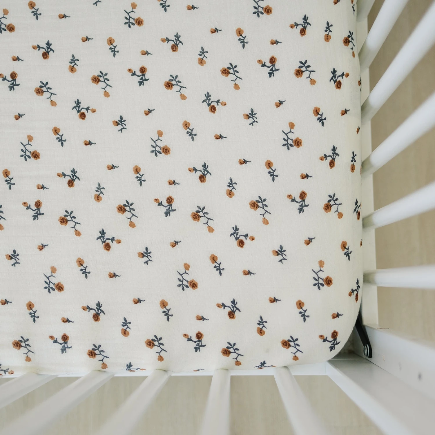 Ensure your little one enjoys the most restful sleep with our Cream Floral Muslin Crib Sheet. Designed to solve the common struggle of maintaining a comfortable temperature through the night, this sheet combines the timeless beauty of a neutral botanical print with the high-performance utility of premium muslin. Its soft, airy texture provides a gentle touch against sensitive skin, making every nap and bedtime a peaceful experience.