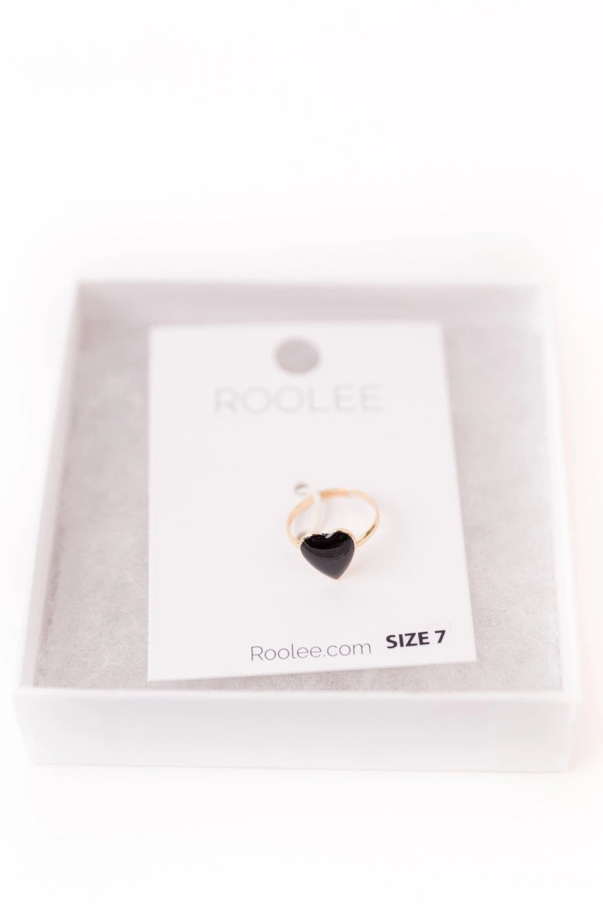 ROOLEE presents the Romeo Ring, a sophisticated blend of modern edge and timeless romance. Designed for those who appreciate bold accents, this piece seamlessly integrates into your seasonal wardrobe, offering an iconic black and gold aesthetic that serves as a masterpiece for your fingers.