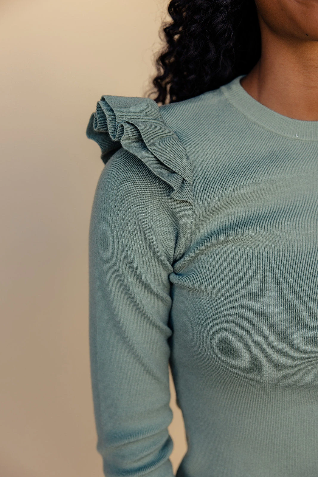- Chic Ruffle Detailing: The delicate ruffle sleeves add a feminine, modern twist to the timeless sweater silhouette.