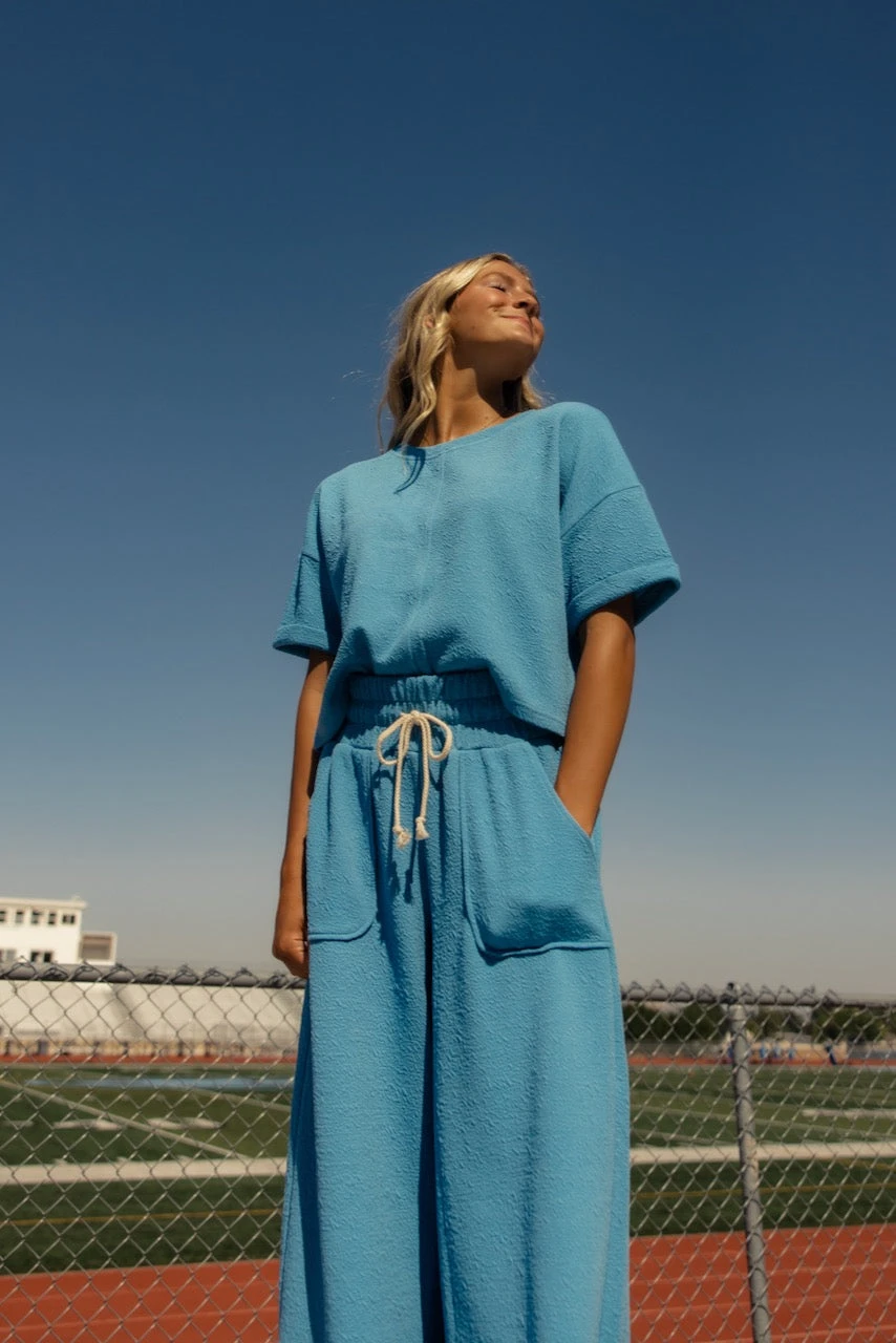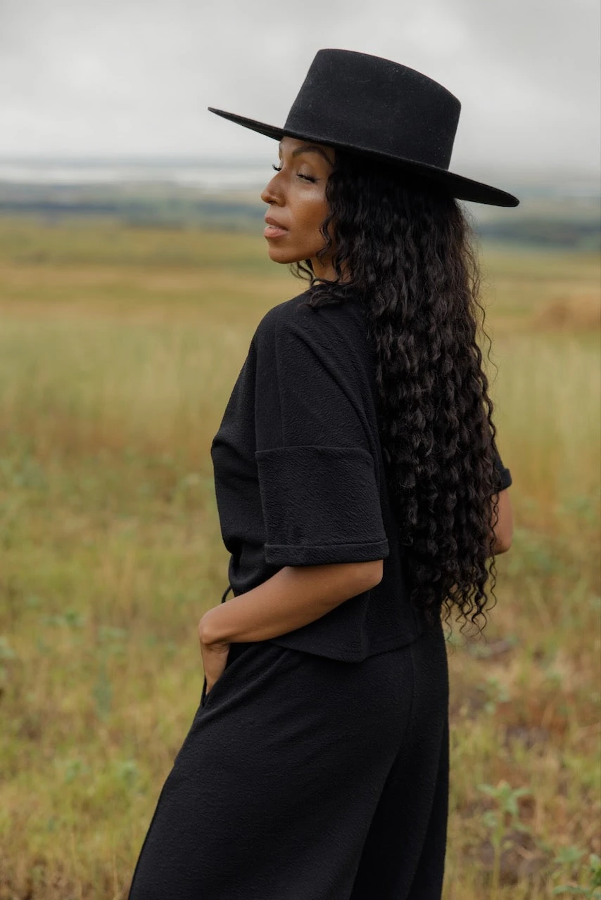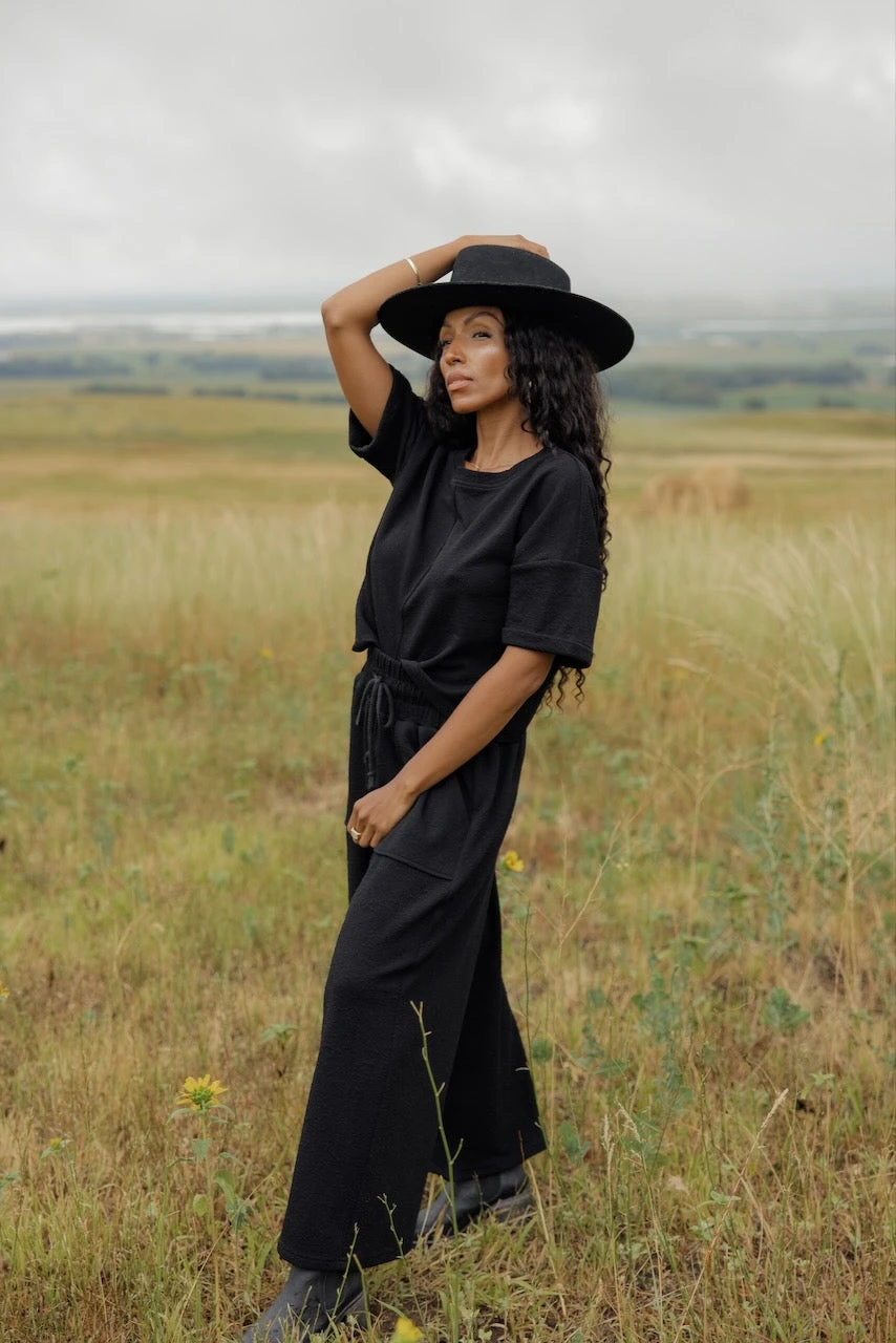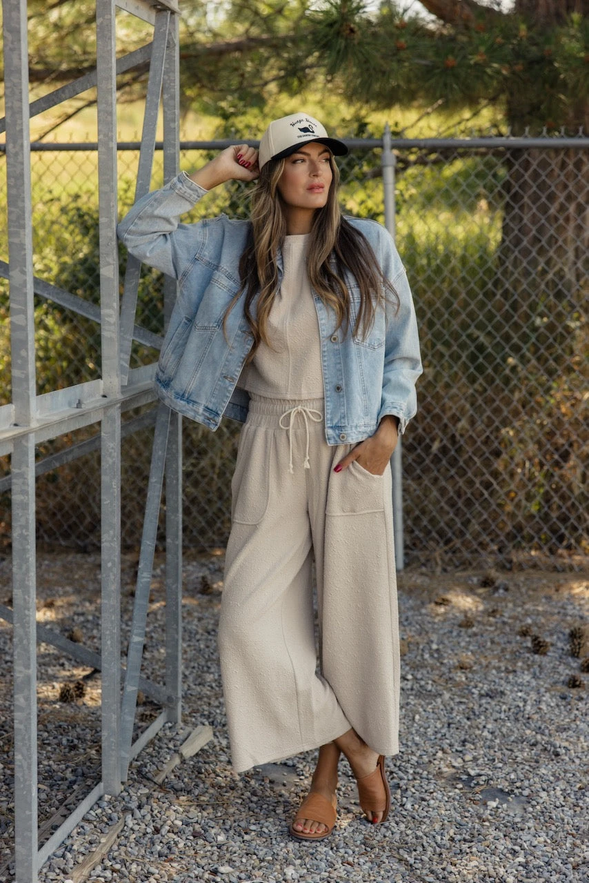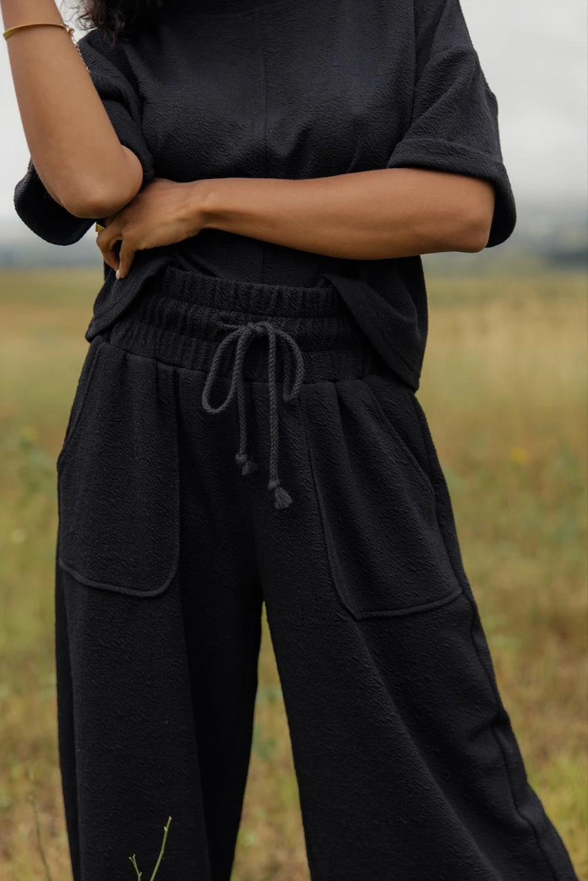 Experience the perfect blend of modern sophistication and ultimate comfort with the SALT Linden Heights Textured Set. This coordinated duo features a relaxed drop-shoulder cropped top paired with flowy wide-leg pants, designed to create a cohesive look that transitions seamlessly from a cozy morning at home to a casual afternoon out. Crafted from a premium, thick textured fabric, this set offers a luxurious feel and a structured silhouette that remains incredibly soft against the skin.