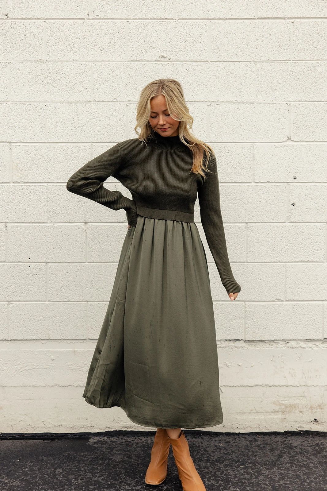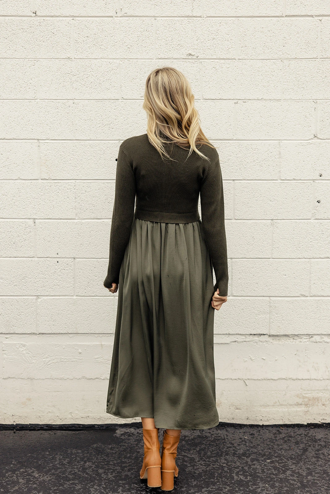Finding the perfect outfit for festive gatherings often means choosing between staying warm or looking glamorous. This Satin Sweater Dress solves that dilemma by combining the cozy texture of a premium ribbed knit top with the sophisticated shimmer of a silky satin skirt. Whether you are attending a winter wedding or a holiday party, this showstopping piece ensures you look polished and feel comfortable from dinner to the dance floor.