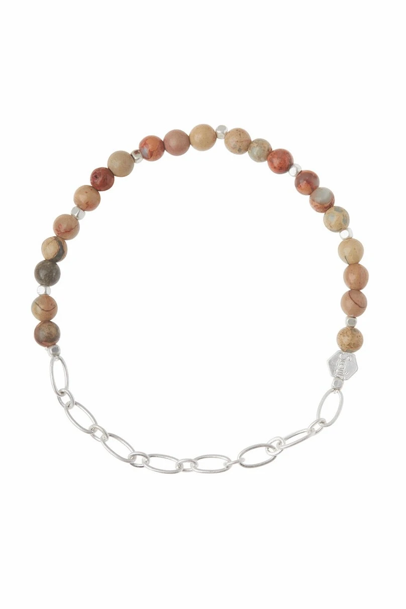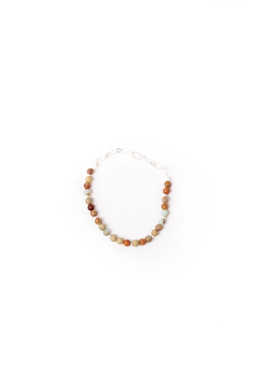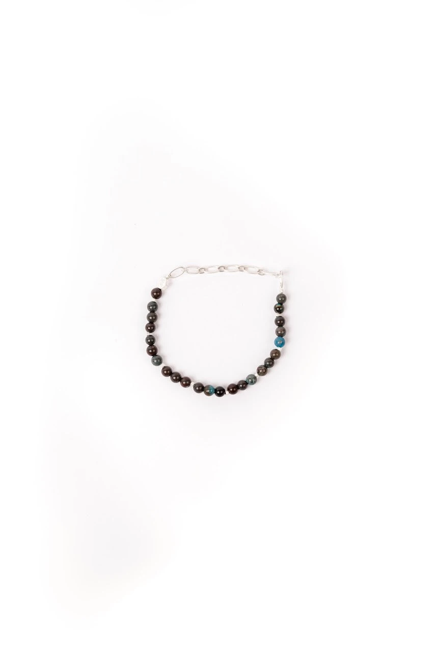 - Materials: 4mm Semi-precious round stone beads, high-quality brass chain, and elastic stretch cord.