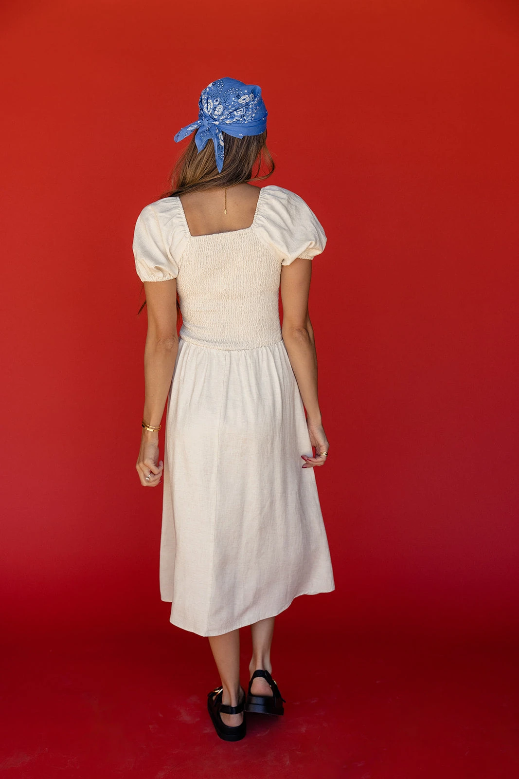 - Style: Smocked Midi Dress
