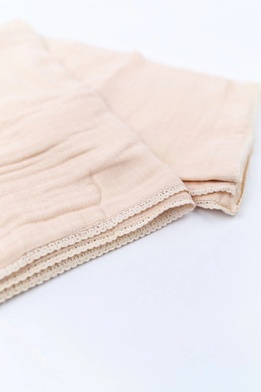 - Elegant Lace Detailing: Features a dainty lace trim that elevates the classic muslin look, making it perfect for photos and special occasions.