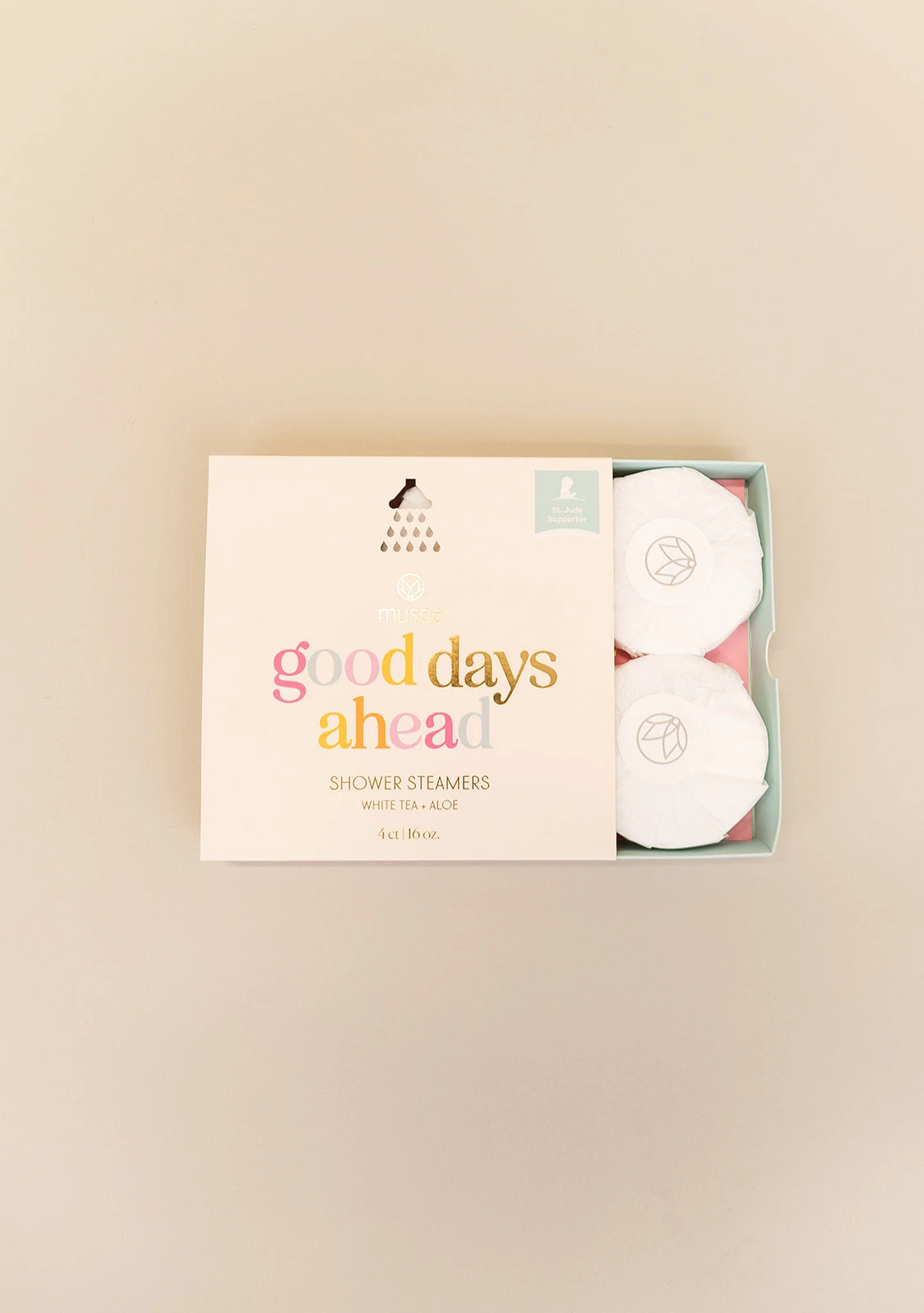 Indulge in a moment of serenity with the St. Jude Good Days Ahead Shower Steamer. Designed to turn your daily shower into a refreshing sanctuary, this steamer releases a soothing fusion of white tea and aloe as the steam rises. Whether you are starting your morning with clarity or unwinding after a long day, this aromatic experience provides the perfect escape while supporting a truly meaningful cause.