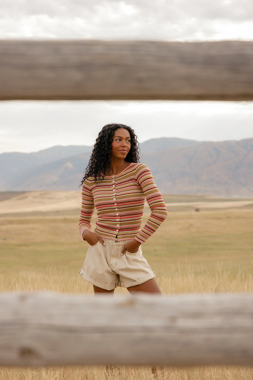 Finding the perfect balance between cozy warmth and eye-catching style can be a challenge. This Trail Mix Stripe Cardigan solves your wardrobe dilemmas with a snug, playful design that adds a pop of personality to any outfit while keeping you comfortable all day long.